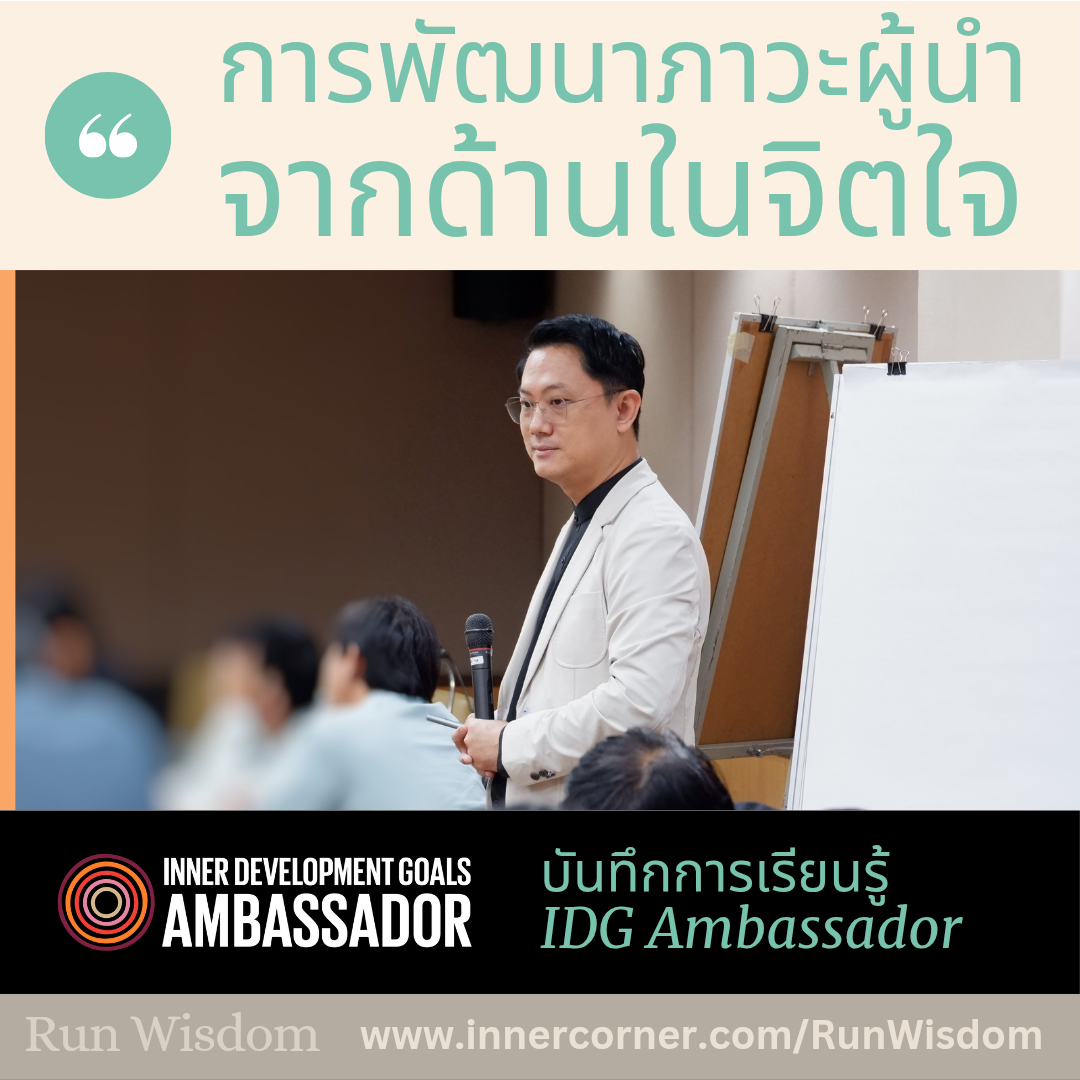 งานเขียนนี้ คือ บันทึกการเรียนรู้ของ ดร. ธีรัญญ์ ไพโรจน์อังสุธร ในโครงการ IDG Ambassador โดยจะเน้นเขียนถึง การพัฒนาภาวะผู้นำ ในฐานะที่เป็นหนึ่งในขอบเขตการปฏิบัติหลักสำหรับการพัฒนาทักษะด้านใน โดยมีความหลากหลายของวิธี และการประเมินระดับหลักฐานเชิงประจักษ์สำหรับแต่ละแนวทาง