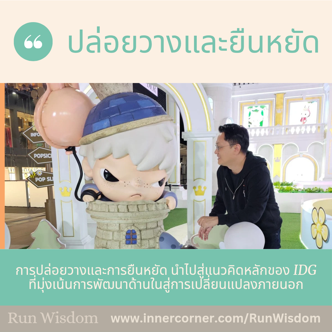 การปล่อยวางและการยืนหยัด นำไปสู่แนวคิดหลักของ IDG ที่มุ่งเน้นการพัฒนาด้านในสู่การเปลี่ยนแปลงภายนอก (Inner Growth for Outer Change) สร้างคลื่นความเข้าใจร่วมกันว่า การเปลี่ยนแปลงภายนอกนั้น จะต้องควบคู่ไปกับการพัฒนาด้านใน