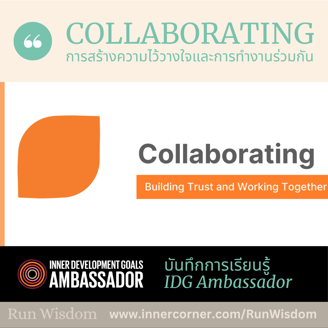 การร่วมมือ - การสร้างความไว้วางใจและการทำงานร่วมกัน (Collaborating — Building Trust and Working Together) การพัฒนาความสัมพันธ์ที่มีความไว้วางใจ การยอมรับคุณค่า ทักษะ และมุมมองที่หลากหลาย และสร้างพื้นที่ปลอดภัย เกื้อกูลให้ทุกคนสามารถมีส่วนในเจตจำนงร่วมและผลกระทบร่วม (Developing relationships of trust, acknowledging diverse values, skills, and perspectives, and creating safe spaces enables everyone to contribute to shared purposes and collective impact.)